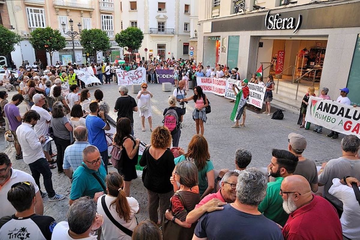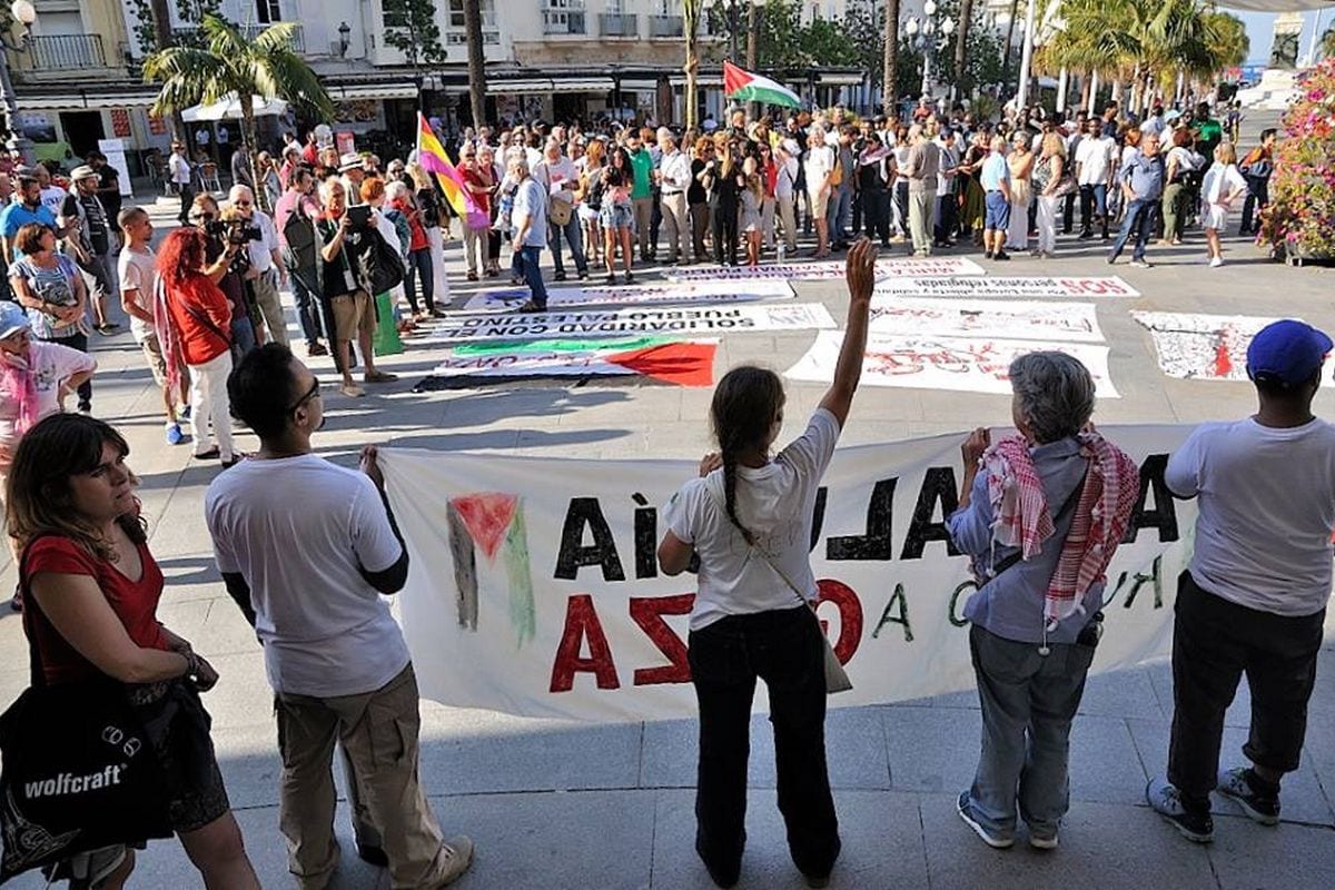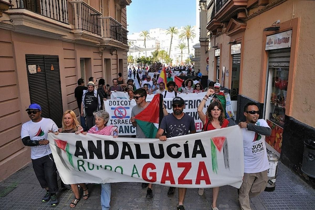 Crowds gathered to greet the crew in Spain and help a short procession in support of the Palestinian people and to call for an end to the siege on Gaza.